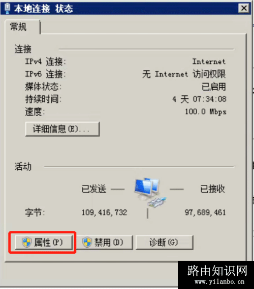 3、在“本地连接 状态”窗口点击“属性”。