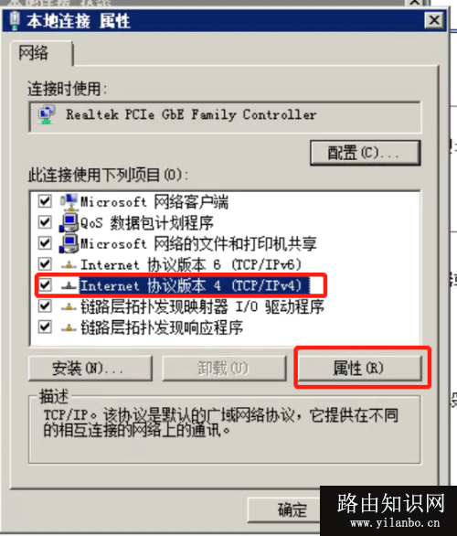 4、自动弹出的“本地连接 属性”窗口选择“Internet 协议版本 4 (TCP/IPv4)”然后点击“属性”。