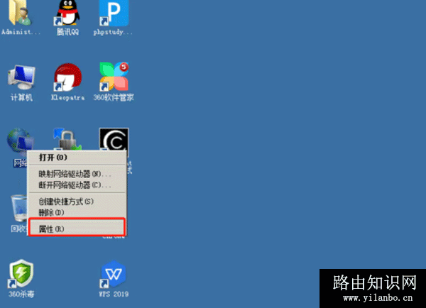 1、把电脑连接爱快路由器的LAN1网口,接下来,右击电脑桌面上的“网络”【属性】。