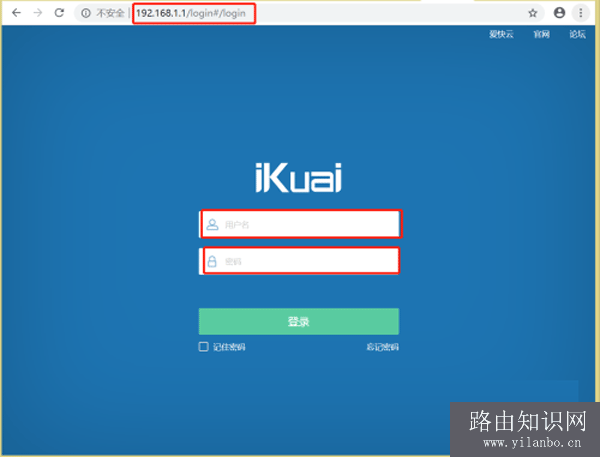 6、打开电脑的浏览器,地址栏输入“192.168.1.1”,在登录界面爱快路由器帐号和密码,默认帐号:admin,默认密码:admin,点击登录。