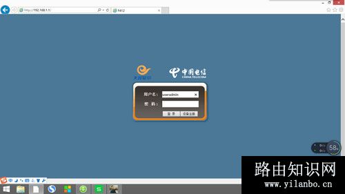2、打开电脑的浏览器,在地址栏输入http://192.168..1.1,按回车键,将出现登录界面,输入用户名和密码,点击确定。在中兴路由器底部都会有用户名和密码的。