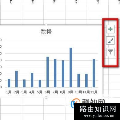 02 可以看到图表默认显示了网格线。接下来,要把这网格线去除。先选中图表。接着,在图表右上方有三个选项。